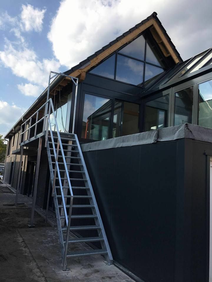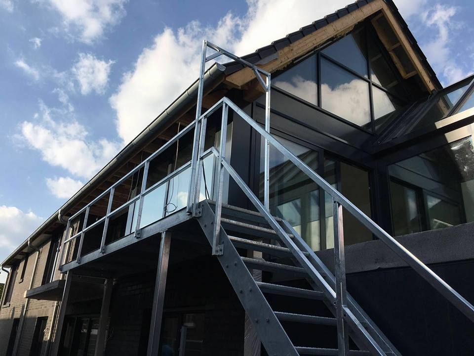 Voor een particuliere klant realiseerden we een stalen loopbrug met geïntegreerde trap, op maat gemaakt om vanuit de serre toegang te geven tot de tuin. Daarnaast dient het bordes als officiële vluchtroute bij calamiteiten. De complete constructie is stevig uitgevoerd, volledig afgestemd op de bestaande situatie en netjes afgewerkt. De klant was zeer tevreden met deze praktische en doordachte oplossing.