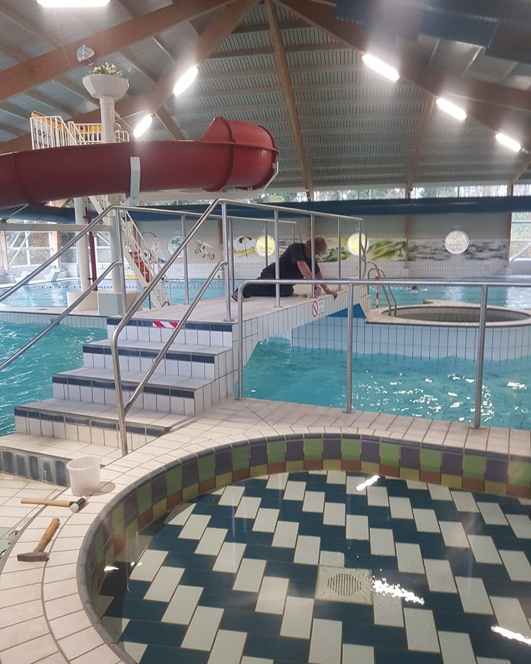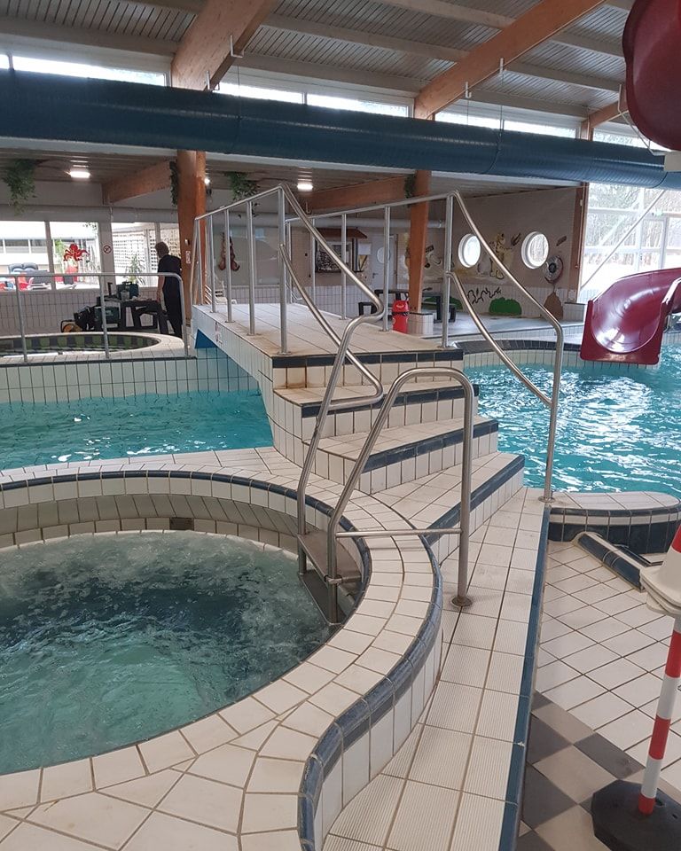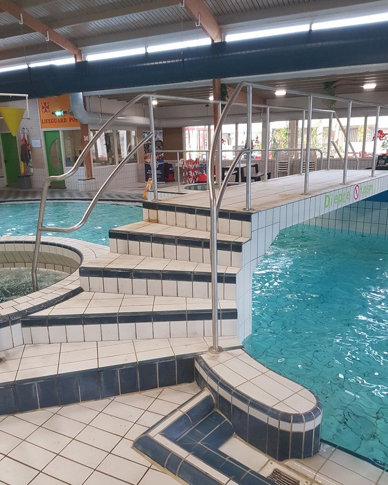 Bij tropische temperaturen plaatsten we op maat gemaakte RVS leuningen in een binnenzwembad.