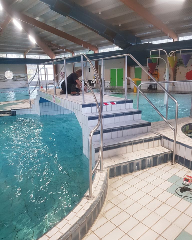 Voor een zwembadlocatie monteerden we op maat gemaakte RVS leuningen. Door de vochtige omgeving en hoge eisen aan afwerking is gekozen voor RVS316. Een technisch uitdagend project met een strak eindresultaat.