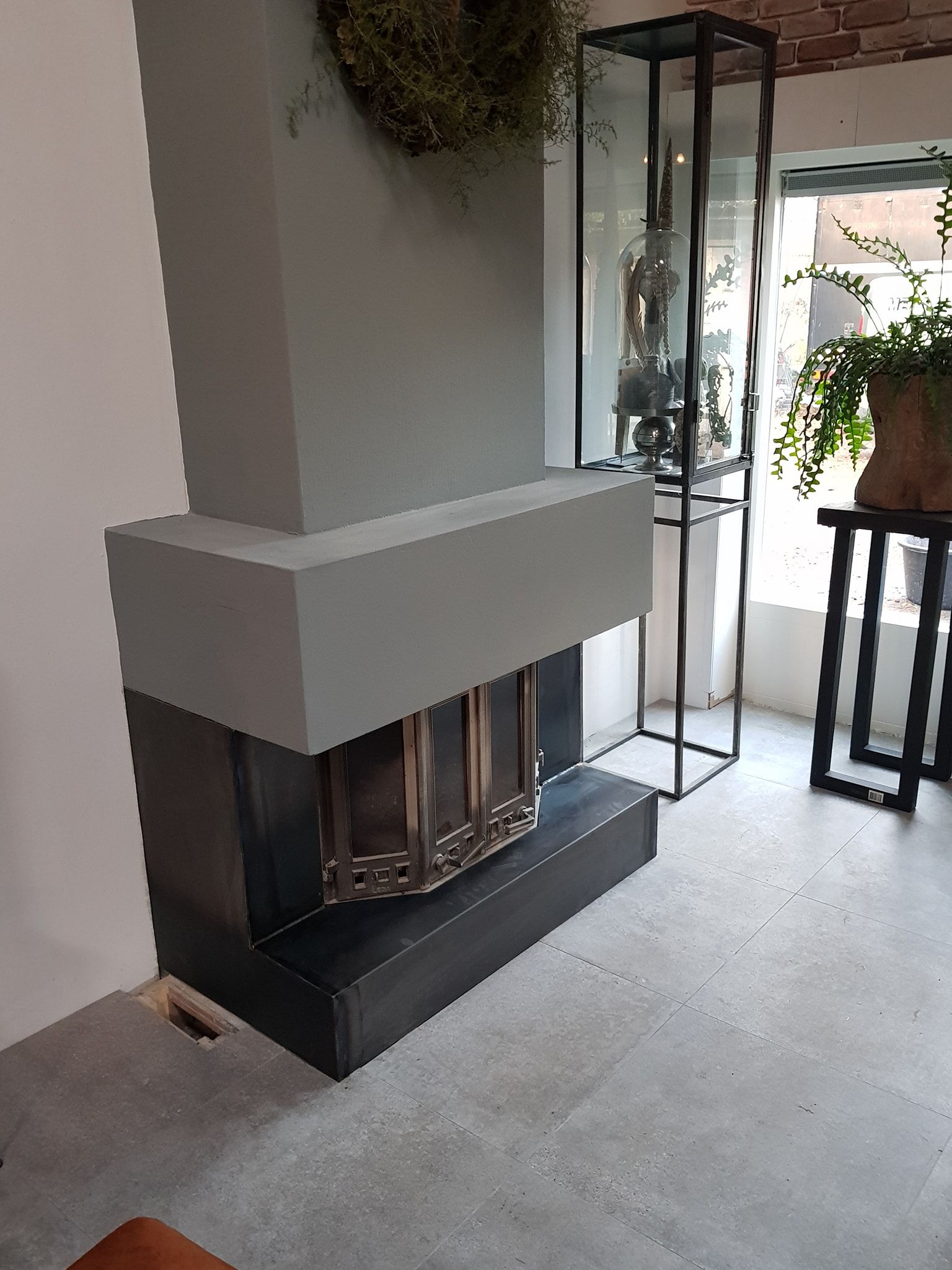 Deze haard is voorzien van een stalen omkasting op maat. Gemaakt van zwart warmgewalst staal, strak afgewerkt en klaar voor jarenlang gebruik.